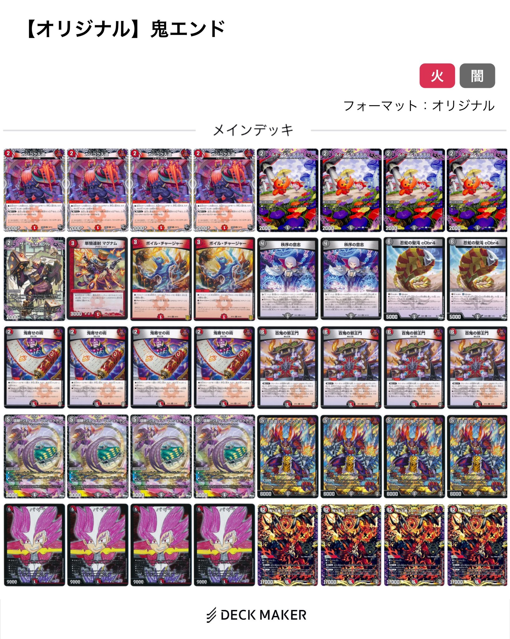 | 商品の特徴 | 赤黒ジャオウガデッキマユ 赤黒ジャオウガデッキマユ 赤黒ジャオウガ。デュエルマスターズ 赤黒我我我ジャオウガ デッキレシピ詳細 | ガチまとめ。赤黒ジャオウガデッキマユ 赤黒ジャオウガデッキマユ様専用 マユ様専用。二重スリーブでデッキケースに入れて発送します。質問ある方はコメントください。赤黒ジャオウガ デュエルマスターズ 構築済みデッキ|Yahoo!フリマ(旧。引退品ですので、神経質な方は御遠慮ください。 | ||